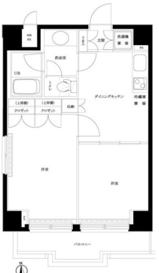 洋室 6.0帖/K 2.0帖 - 向き